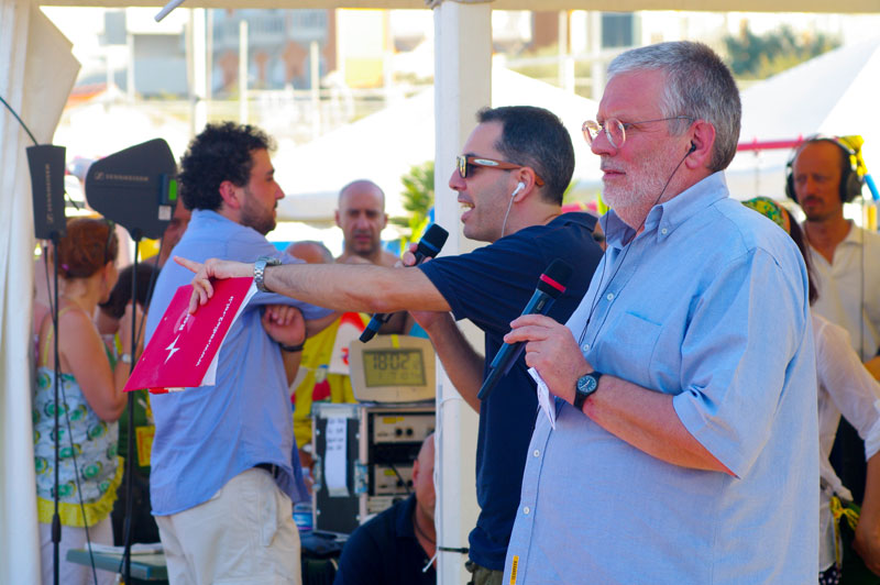 Massimo Cirri e Filippo Solibello mentre dialogano col pubblico