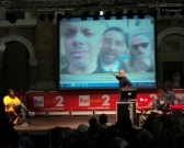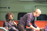 Serata del CaterRaduno 2013 di giovedì 27 giugno: sul palco del Foro Annonario la Banda Osiris e l'Orchestra di via Padova, in piazza Roma Gazebo on the Beach, con Zoro (Diego Bianchi), Makkox e Missouri 4. Foto di Carlo Leone e Simone Paolasini