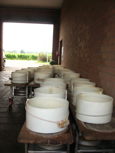 La lavorazione del Parmigiano nei caseifici dell'Emilia