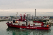 La motonave dei Vigili del Fuoco nel porto di Senigallia