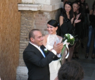 Festeggiamento in Piazza Roma del matrimonio di Francesco Castania e Zhirokova Farida con motociclisti e musica, il 25 settembre 2010 a Senigallia.