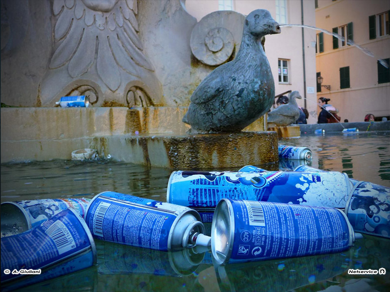 24/03/2011 - "Residui" del carnevale a Senigallia: bombolette nella fontana di piazza del Duca